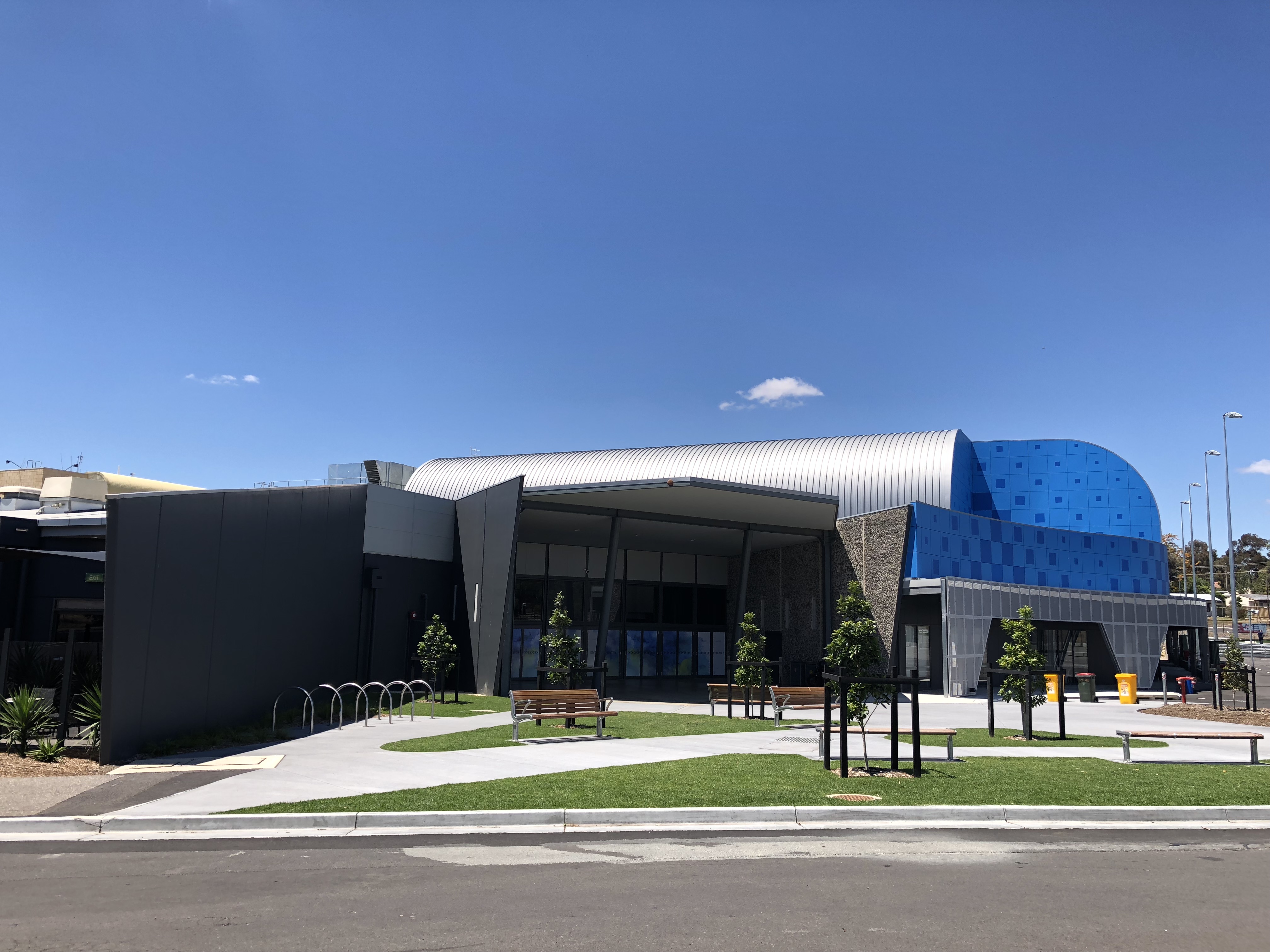 The plumbing service for this project included the provision of hot, cold, recycled and tepid water, sewer, gas and stormwater. With an amazing multi colour blue and grey wall cladding and roofing.